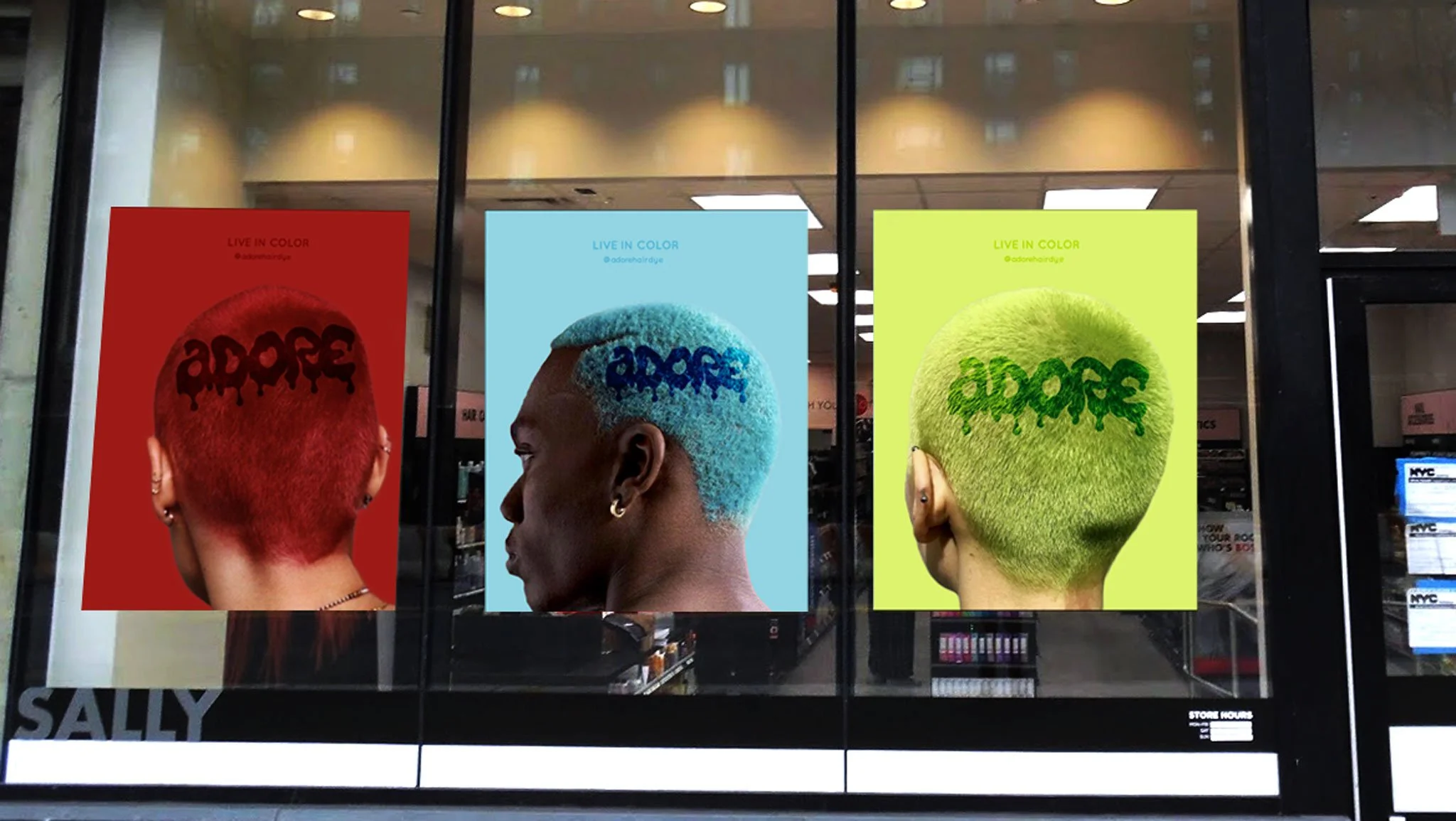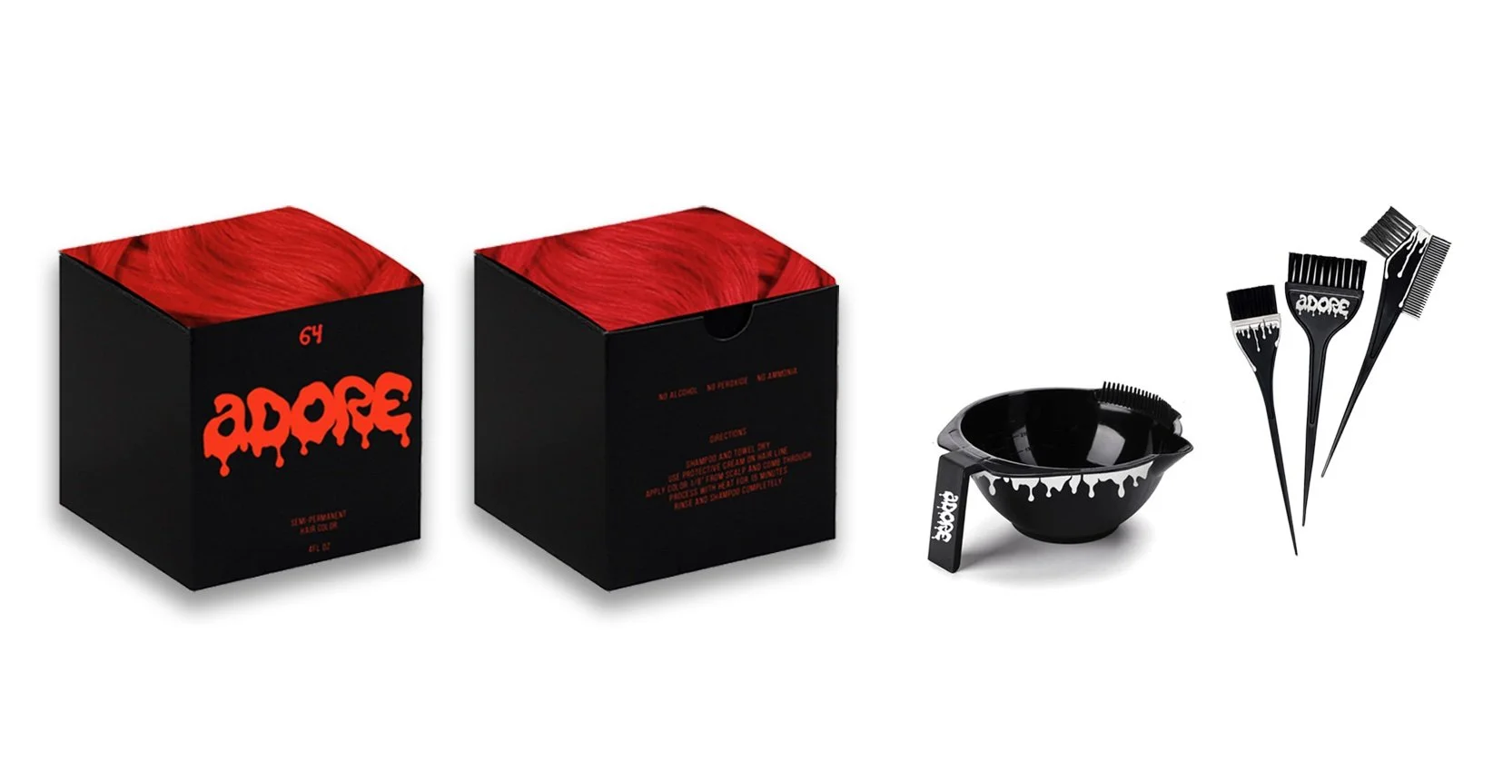 Rebranding for Adore hair dyeHandlettered logo made with soap, inspired by the movement of the liquid dye.